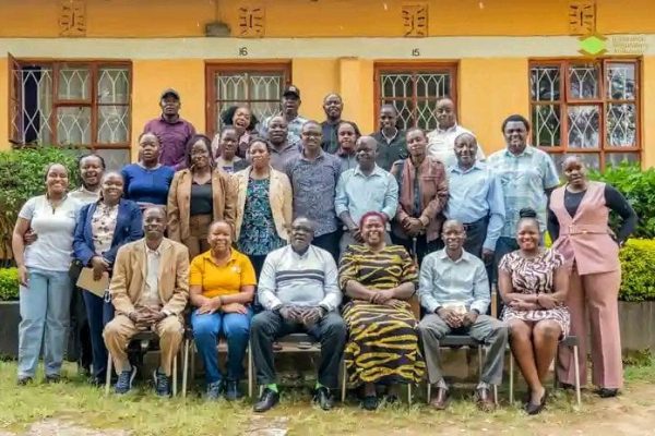 From left Insurance regulatory authority IRA officials director corporate services (DCS) Esther Musyoki 2nd seated,board of directors Immaculate Shamala middle and deputy director communication and public relations Joanne Wanjala pose for a photo with Business reporting journalists after the completion of the IRA Bima Mashinani training.